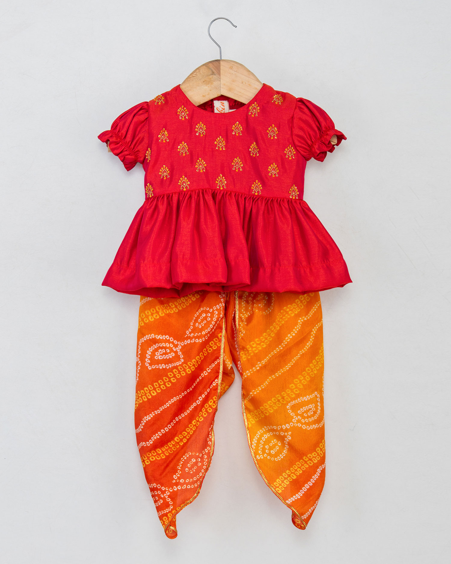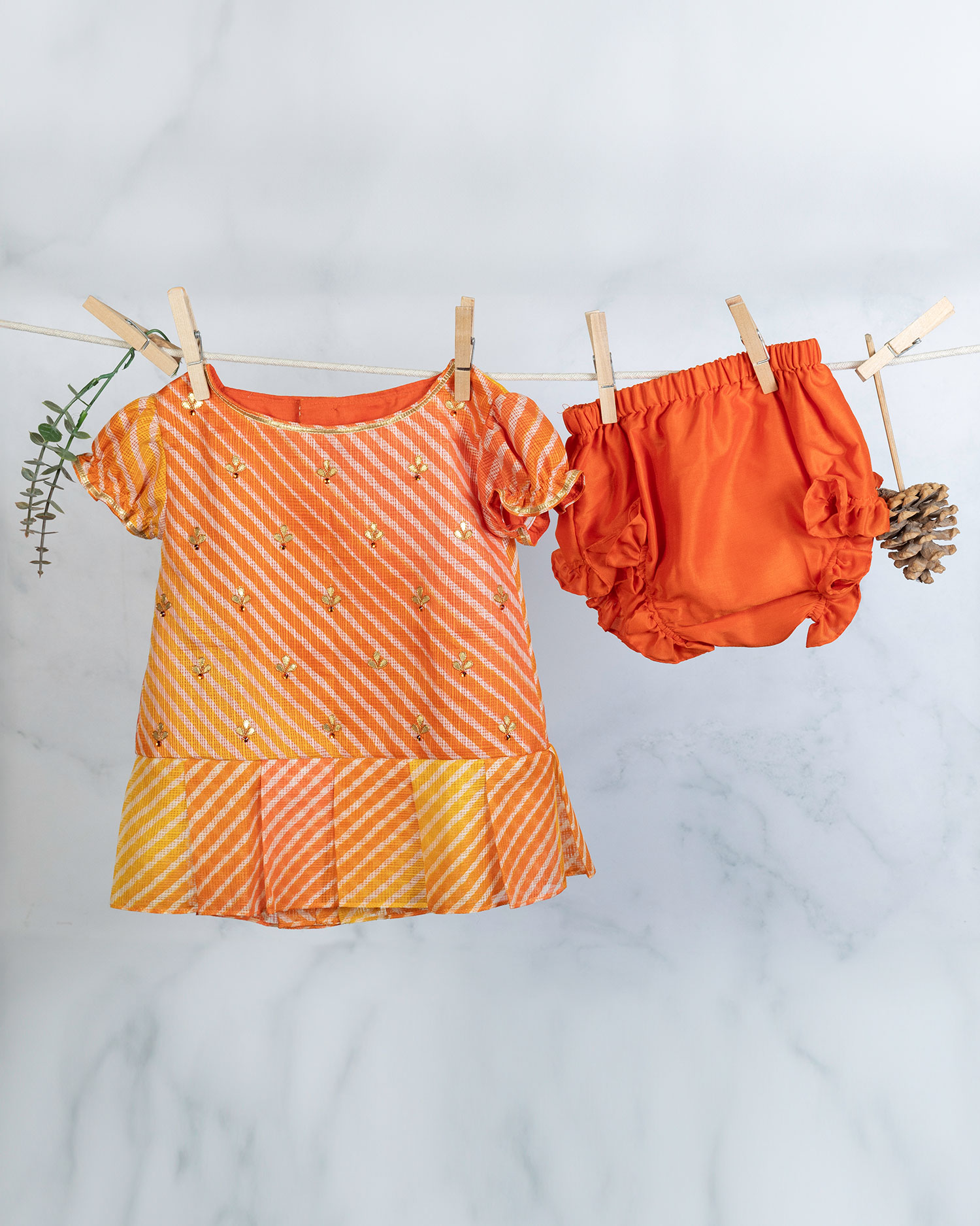 Orange Leheriya Frock With Bloomer