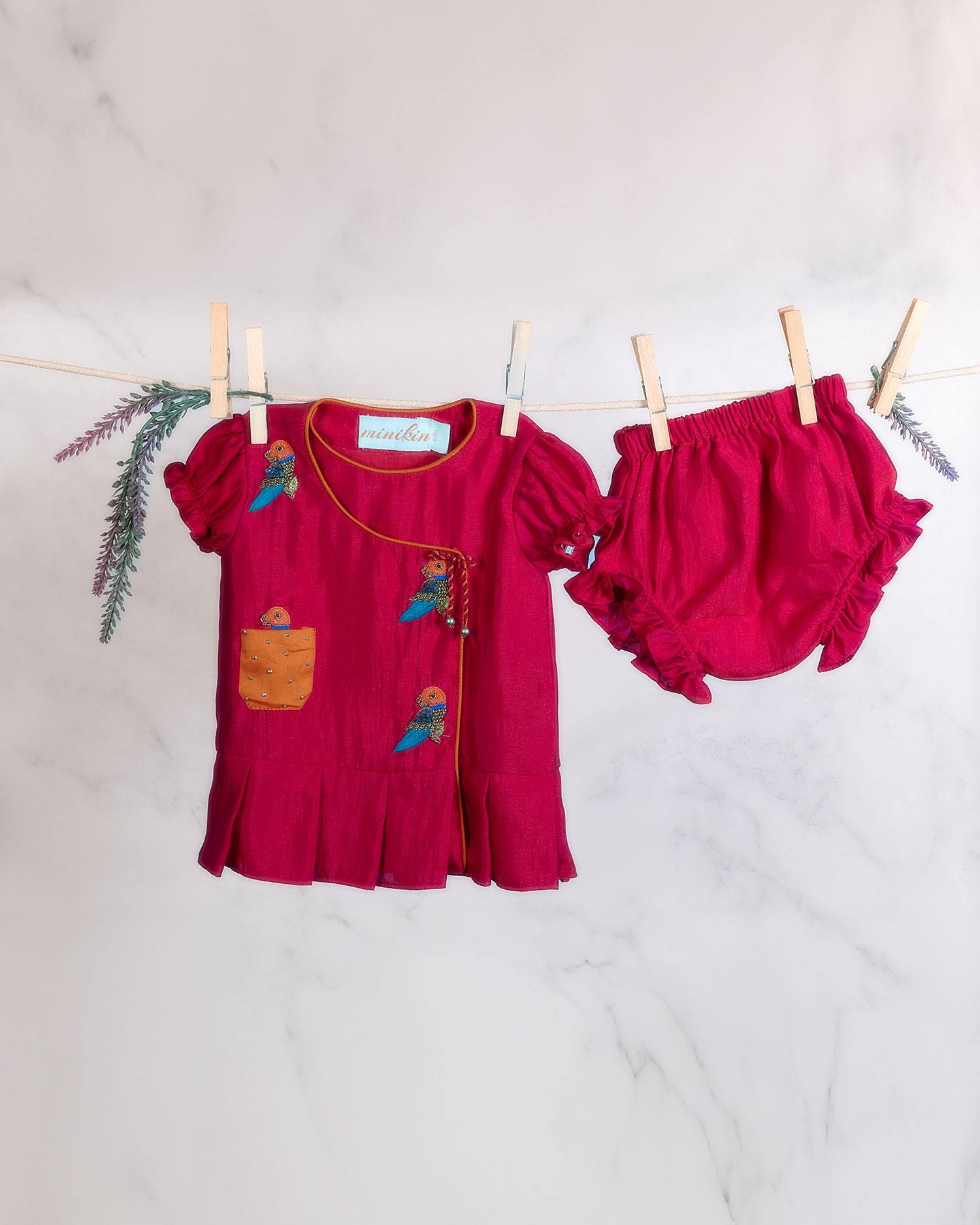 Red Parrot Motif Frock With Bloomers