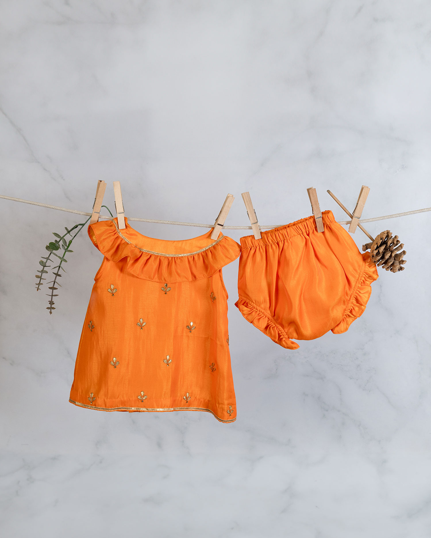 Orange Gota Frock With Bloomers