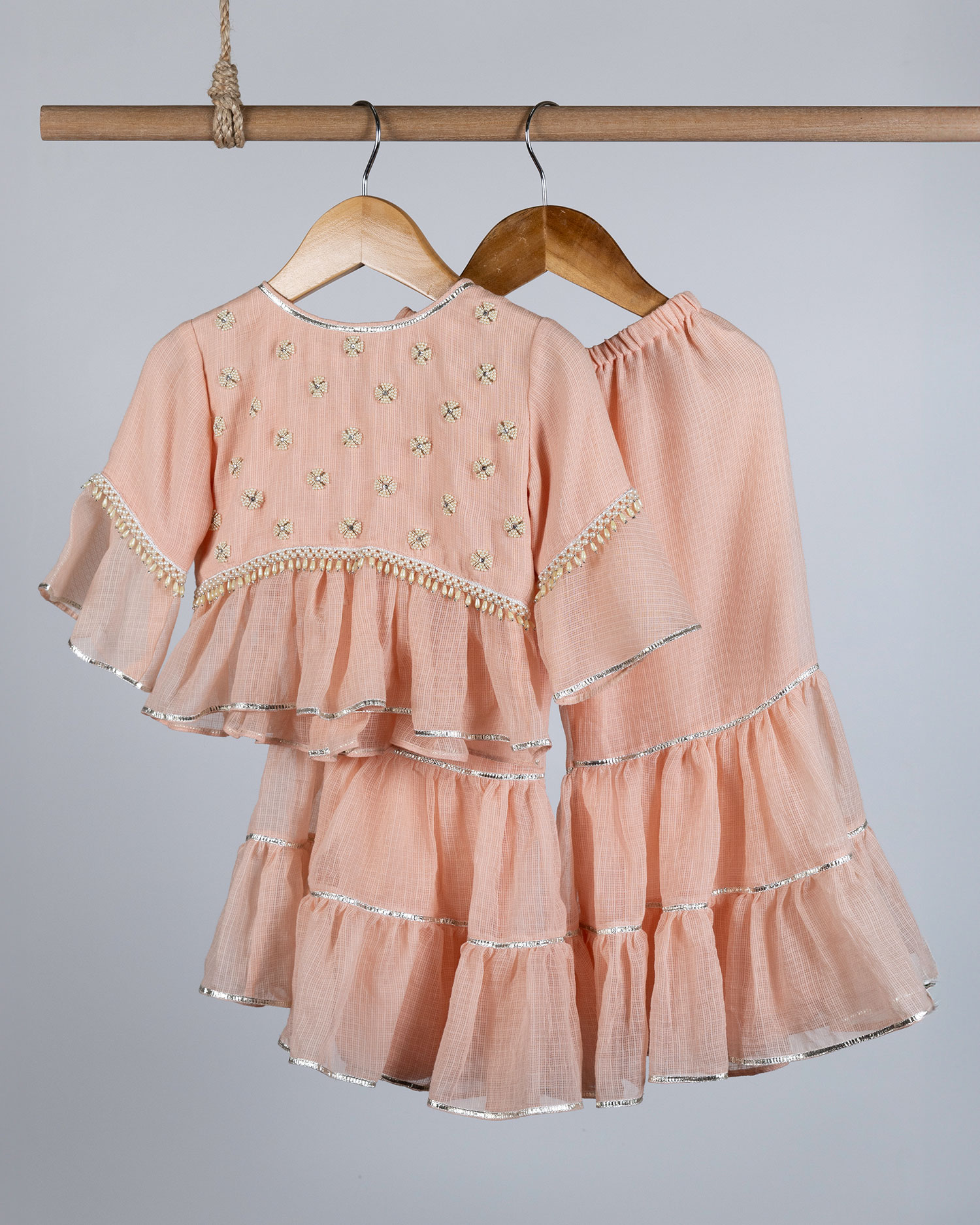 Peach Embroidered Sharara Set
