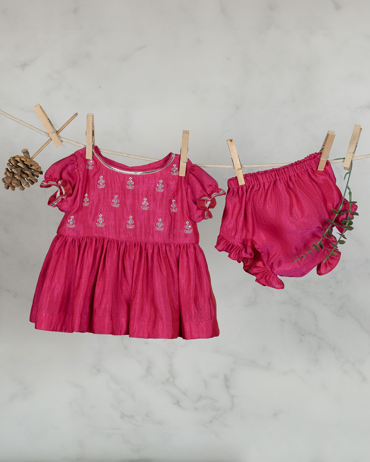 Pink Hand Embroidered Frock With Bloomers