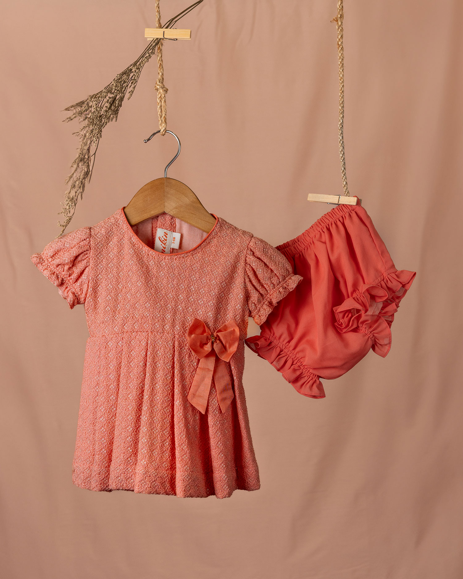 Peach Chikenkari Frock