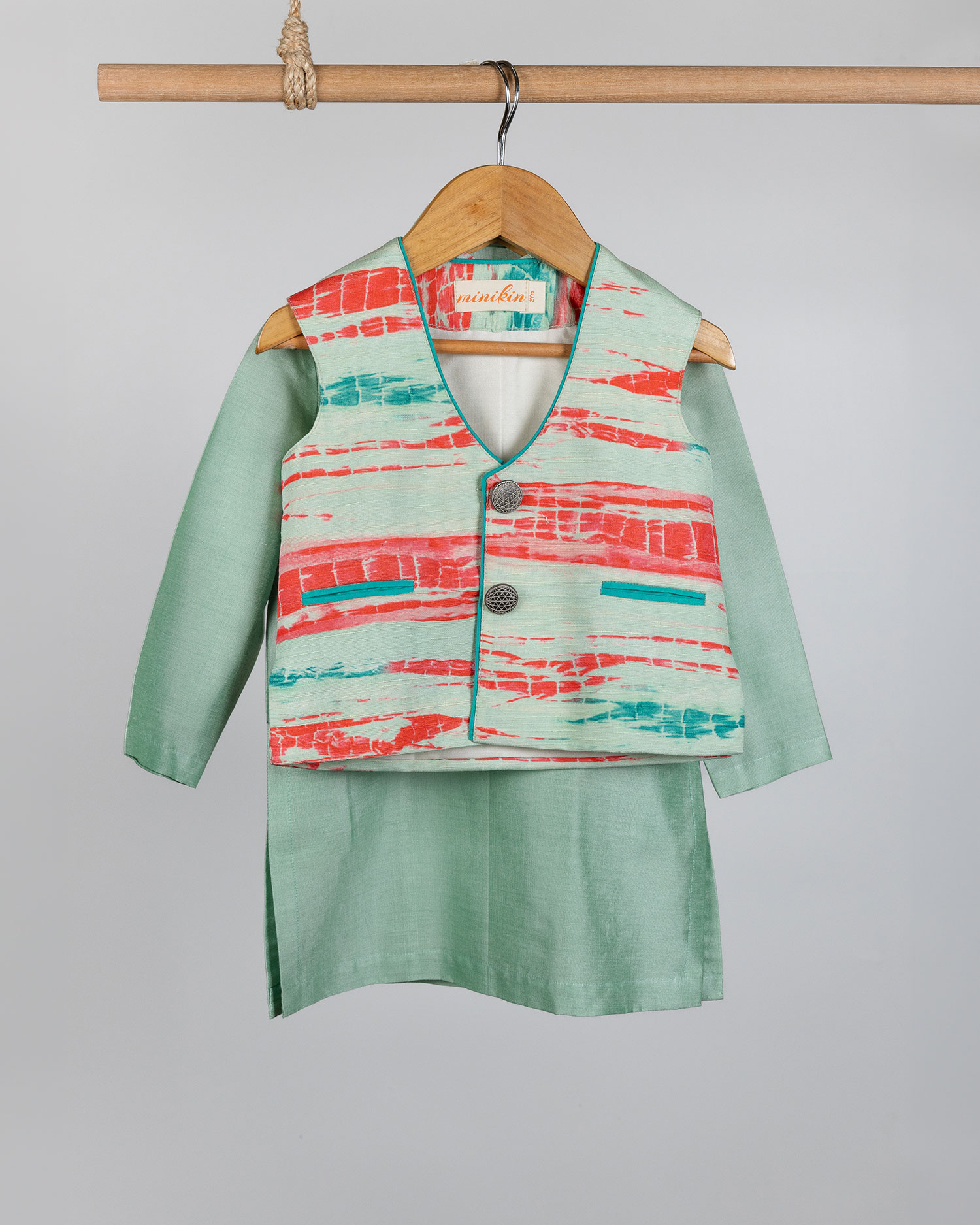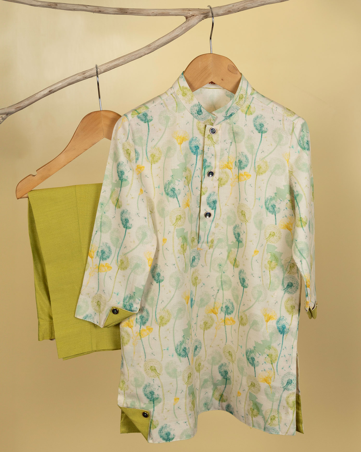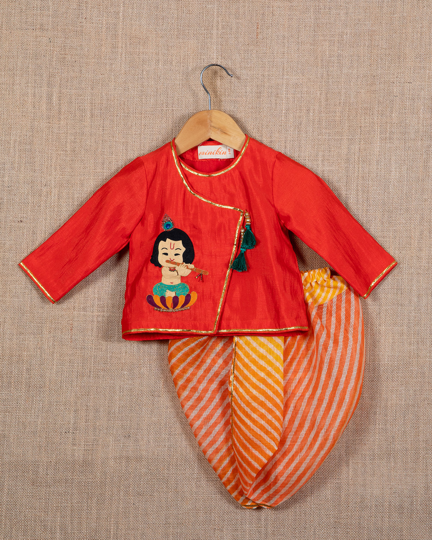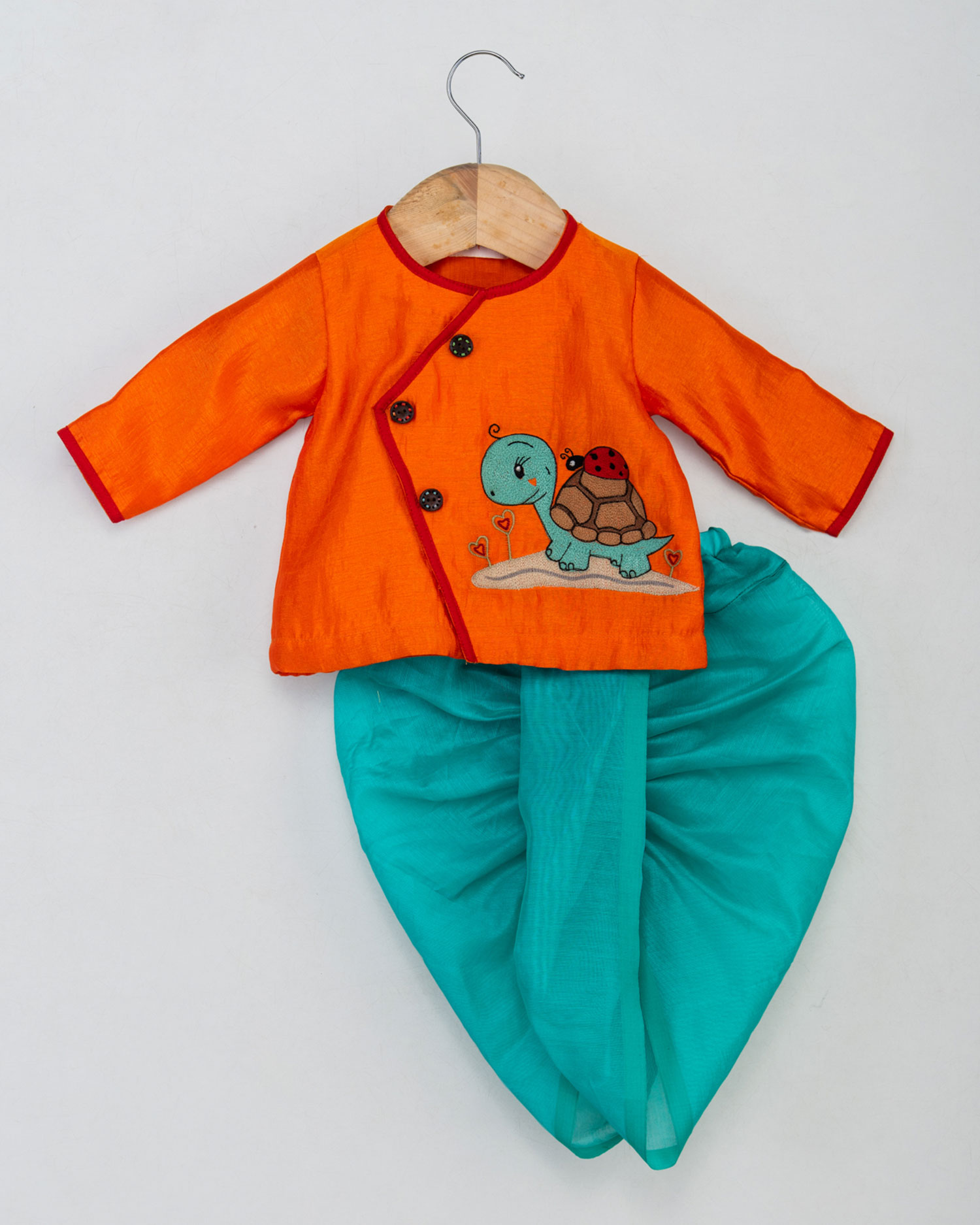 Yellow Pearl Embroidered Angarkha With Dhoti