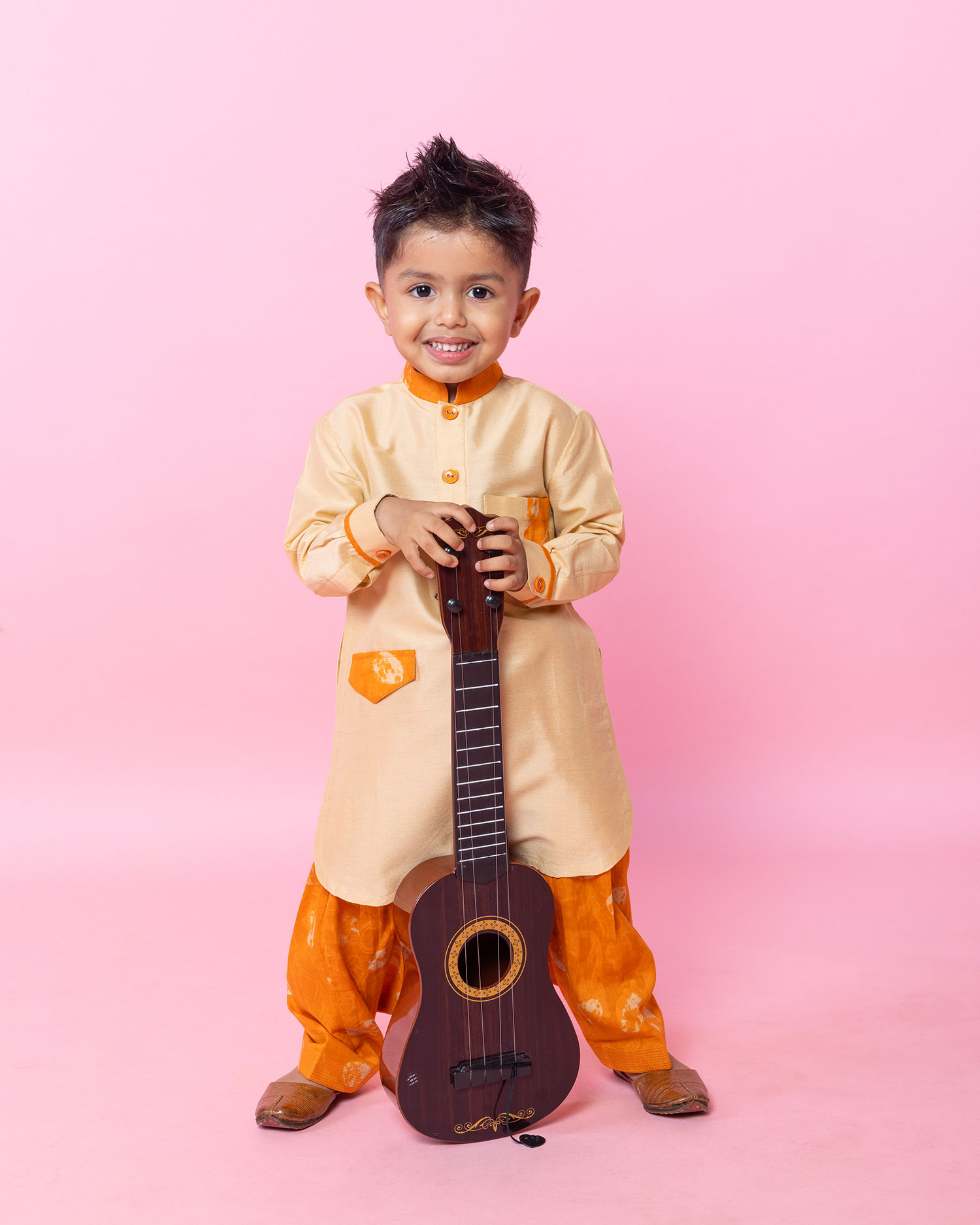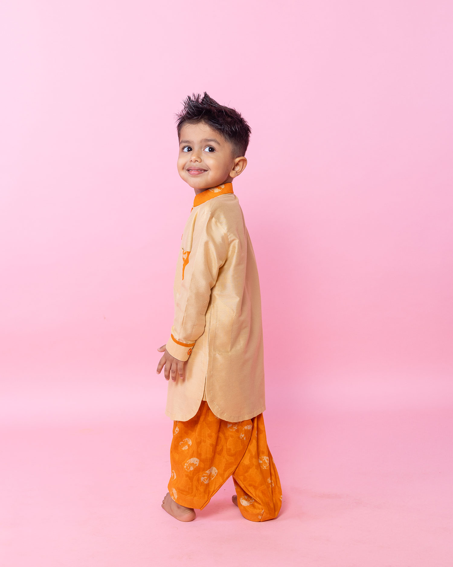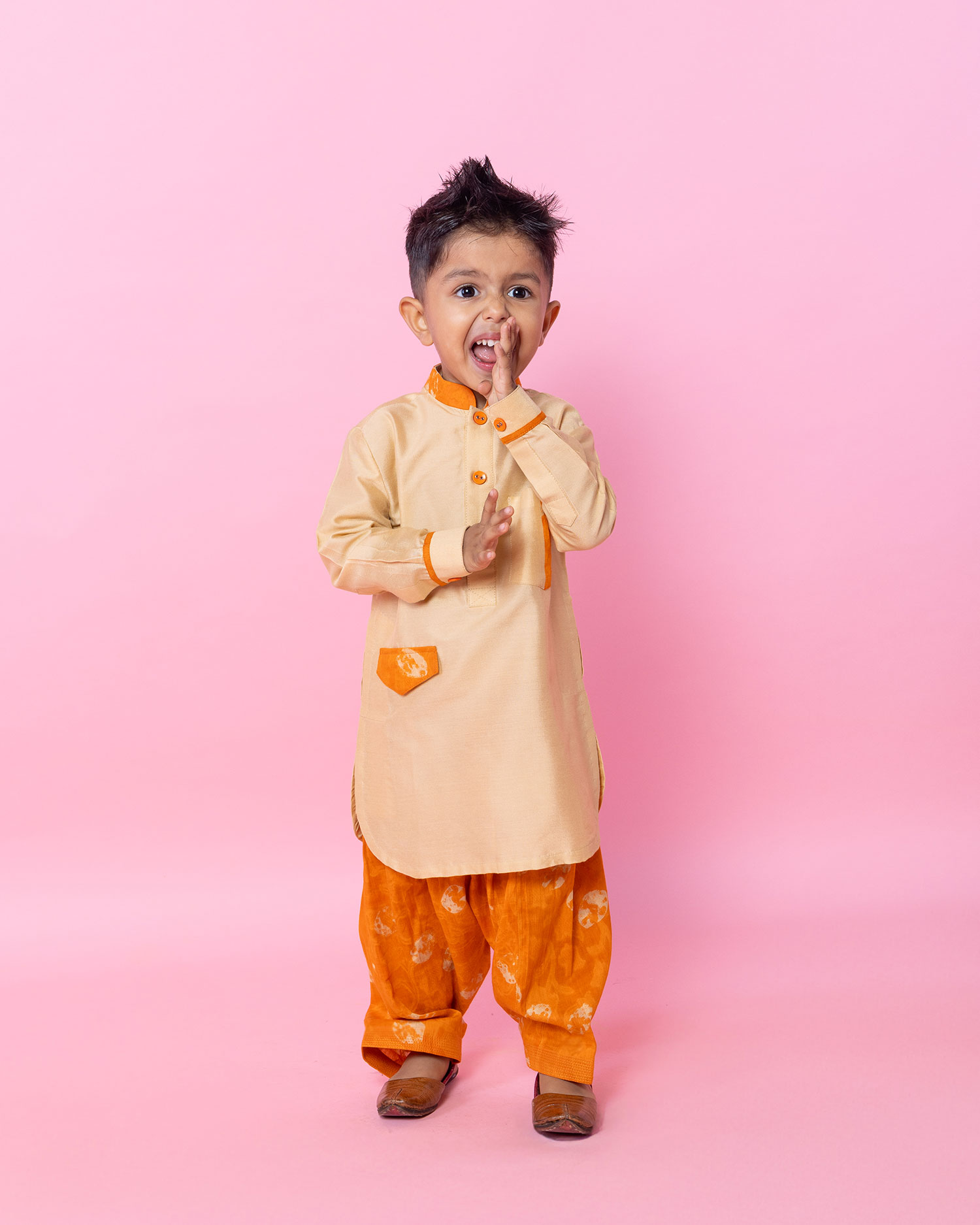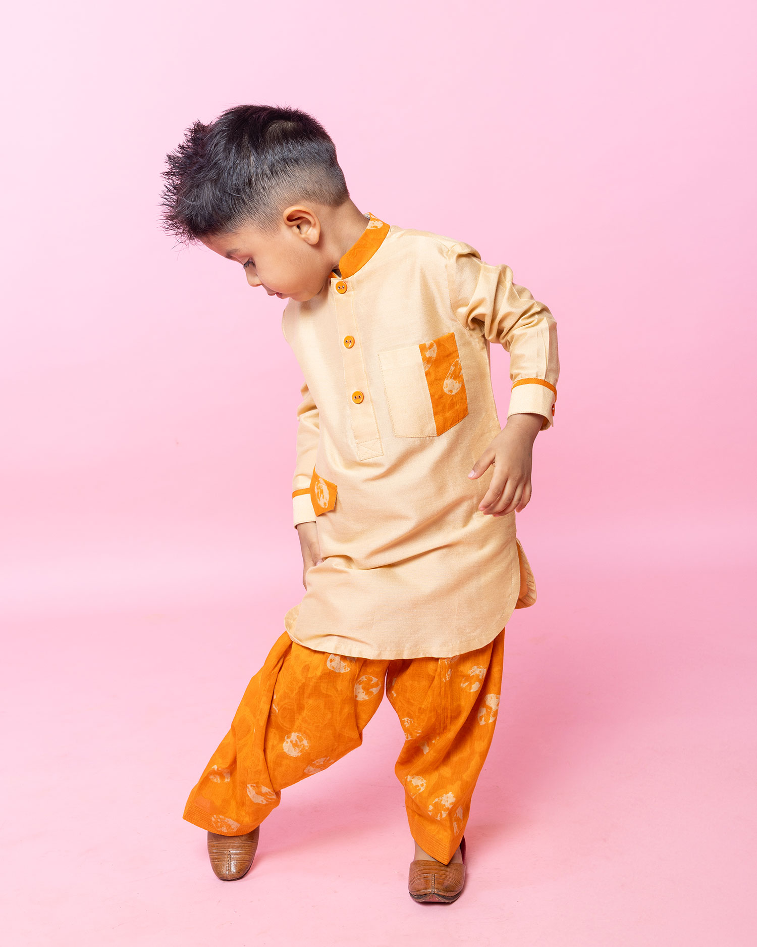 Beige And Orange Pathani Set