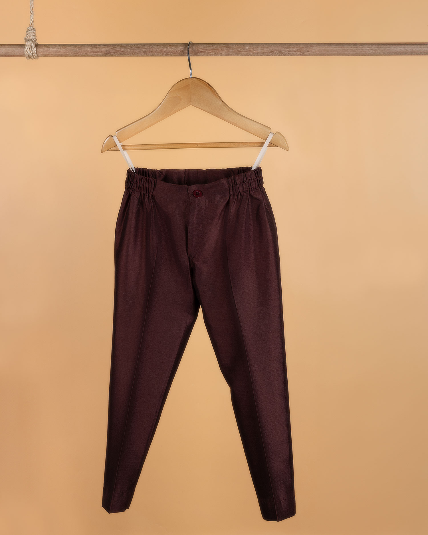 Blossom printed cotton linen jacket paired with wine cotton silk kurta and pants.