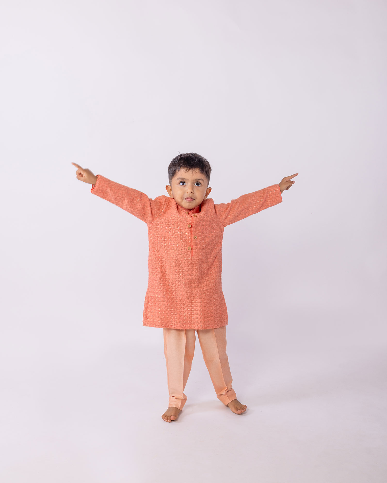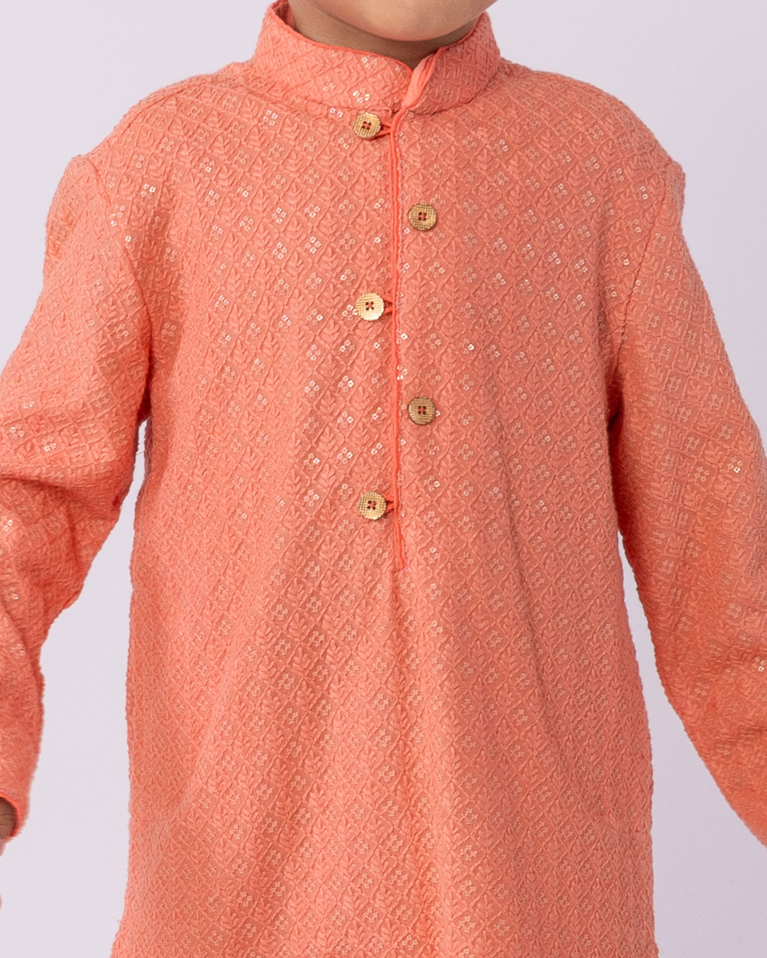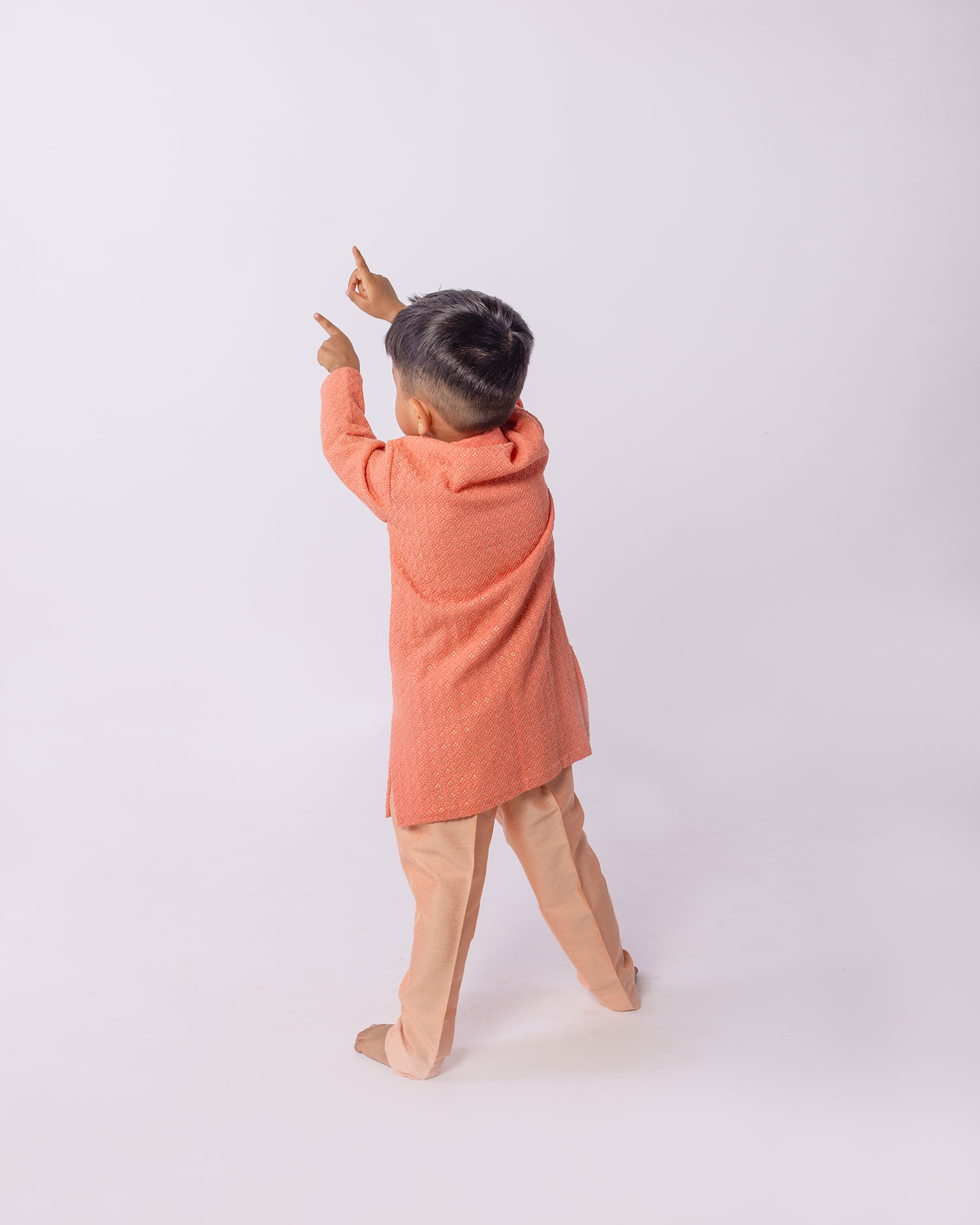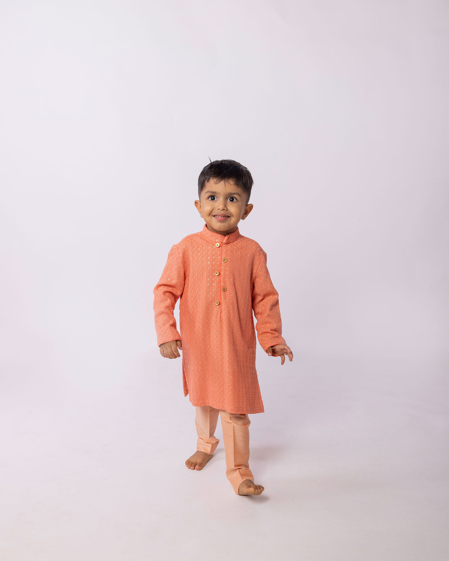 Coral luckhnawi kurta set  with cotton lining paired with pants.