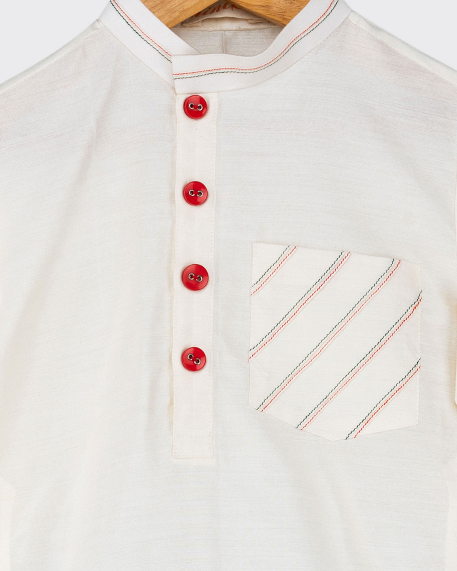 Cream khadi linen kurta paired with cotton green patola print patiala