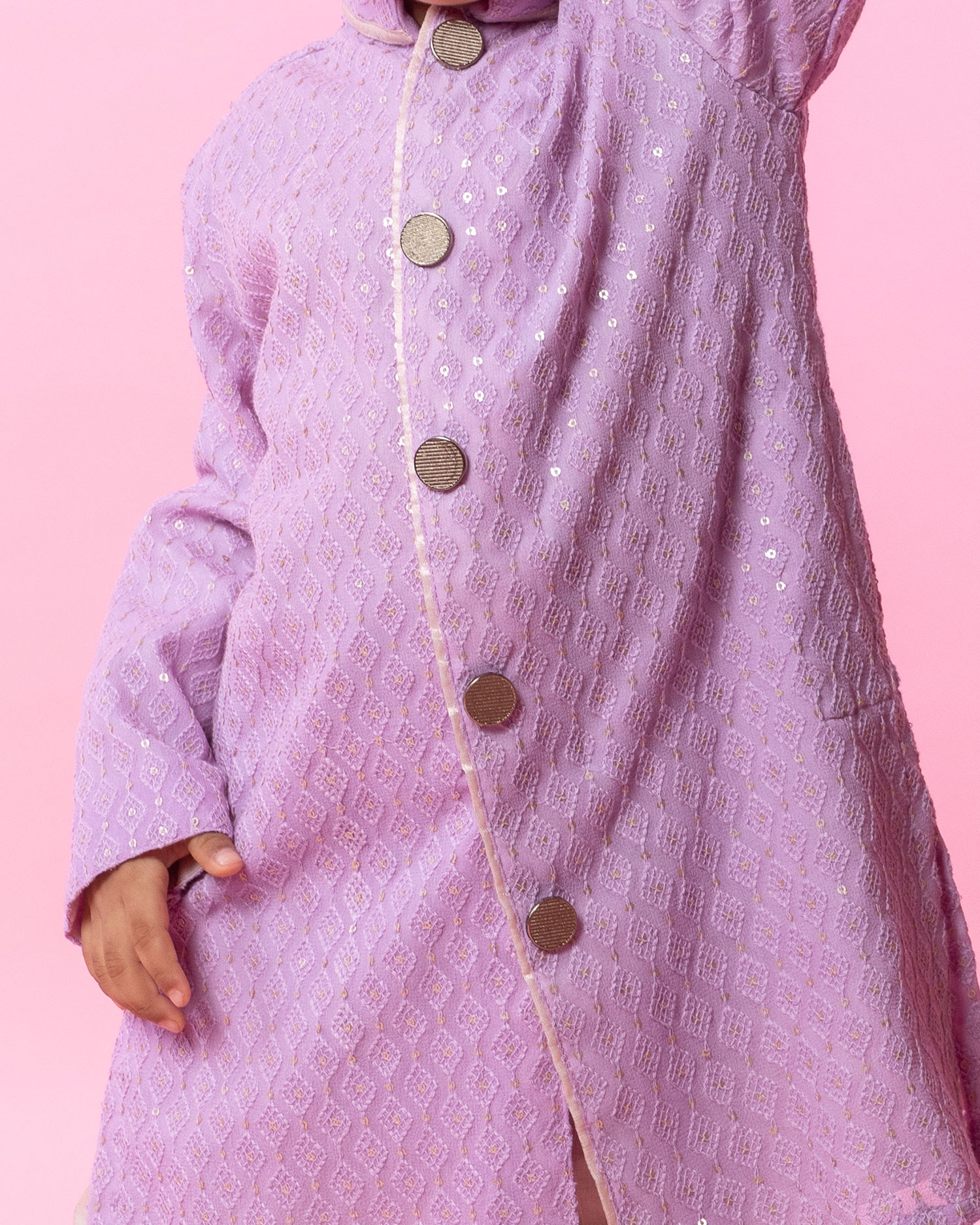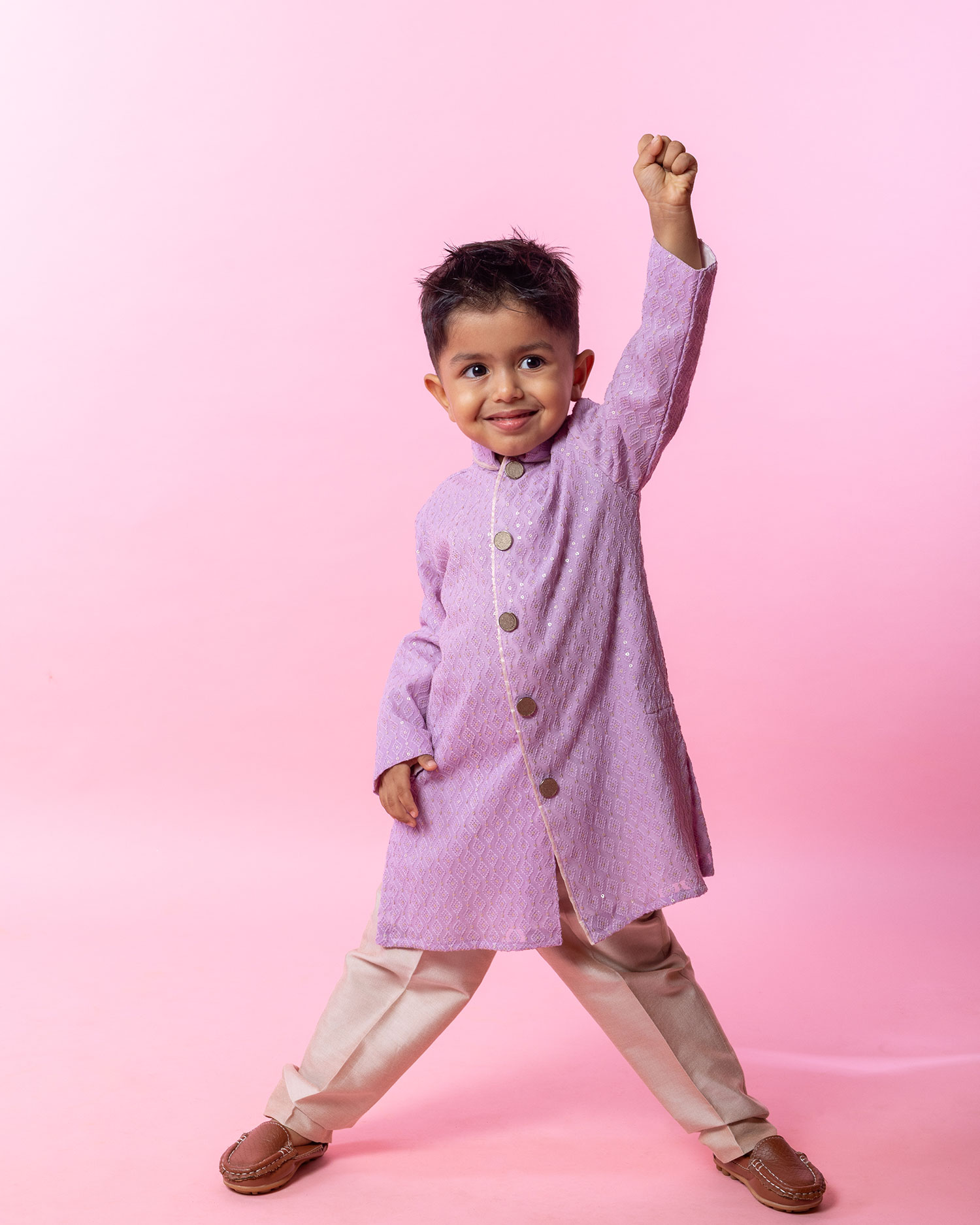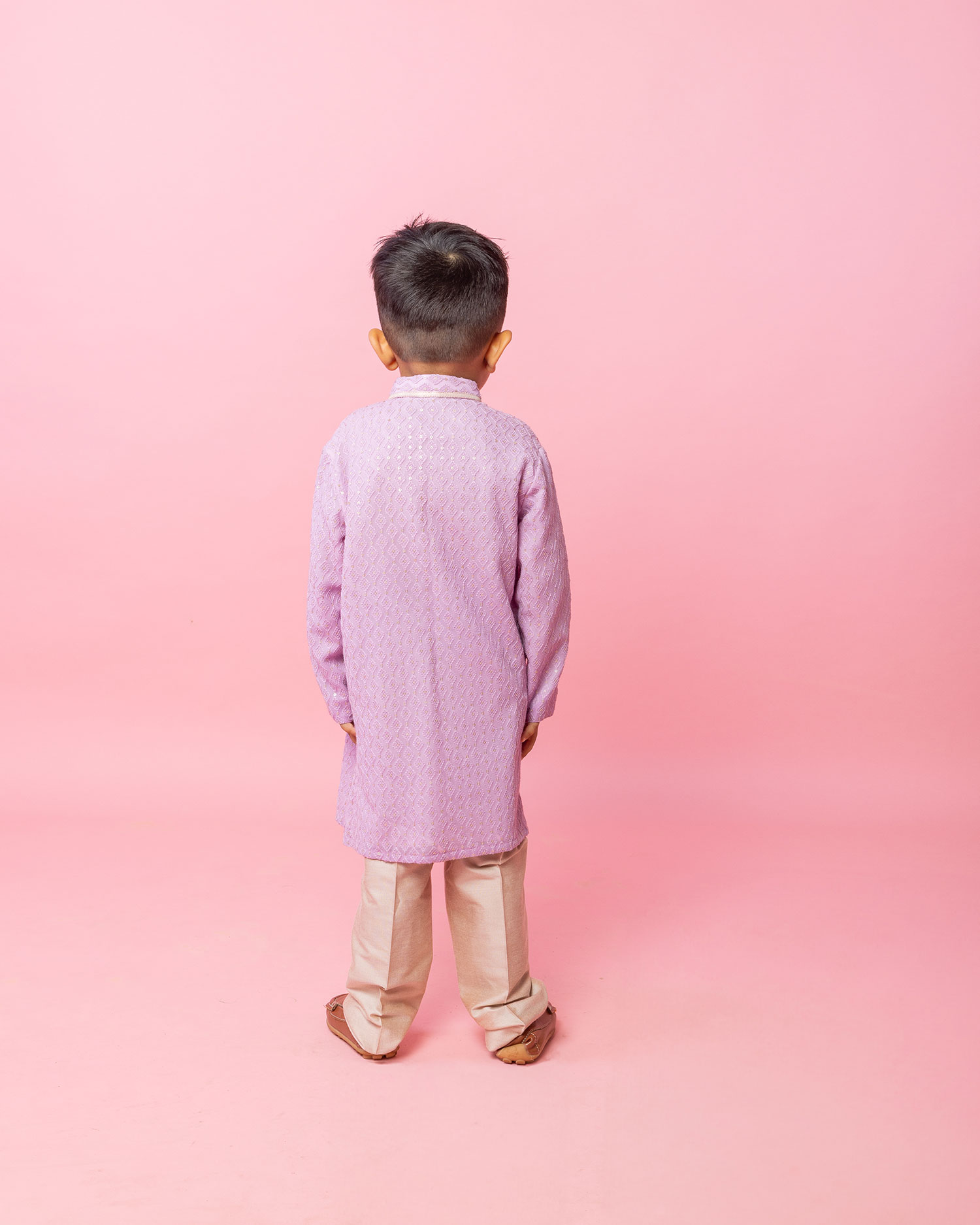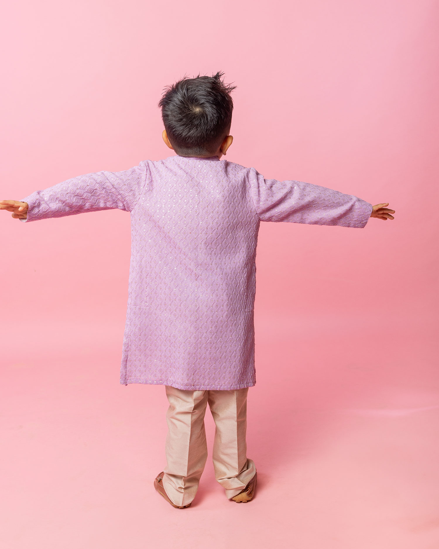Lavender luchnawi kurta with cotton lining paired with pants.