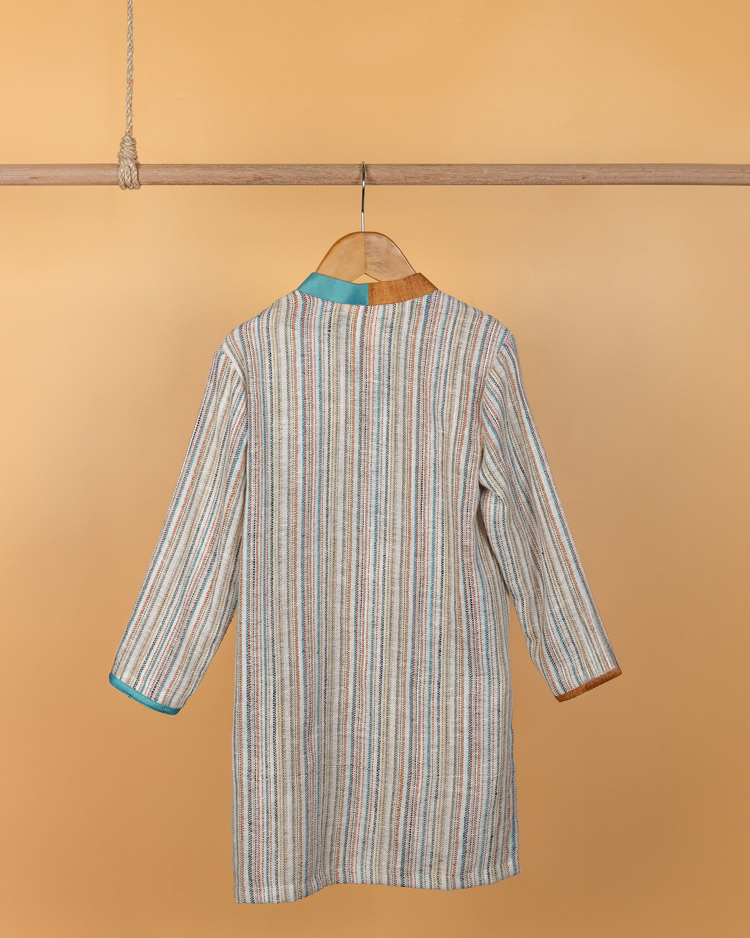 Multi color Khadi linen kurta in woven fabric paired with pant style pyjama
