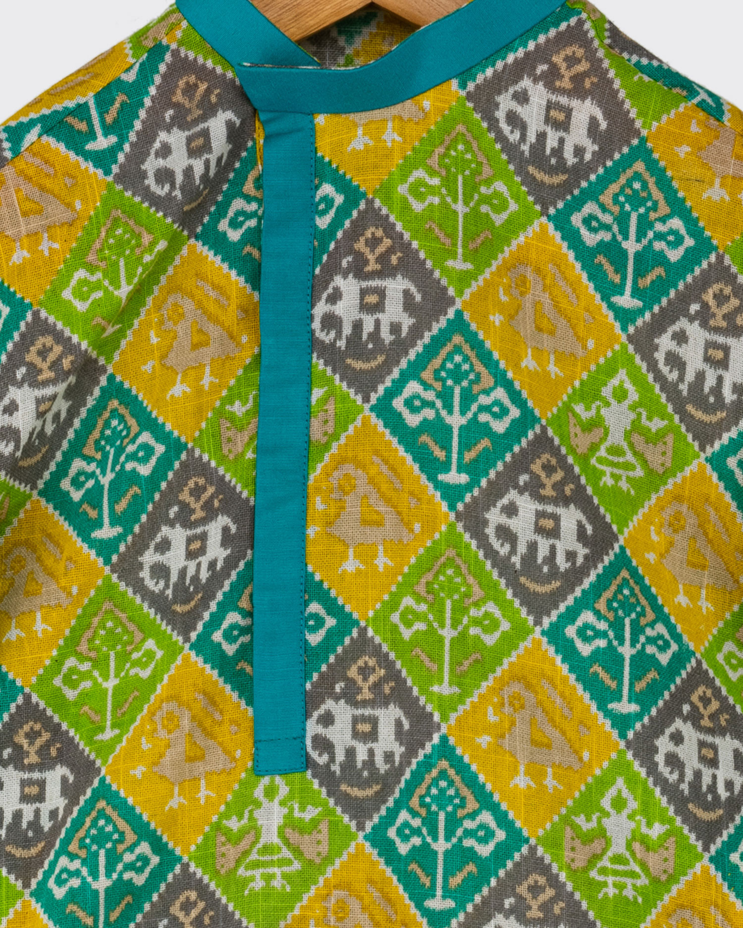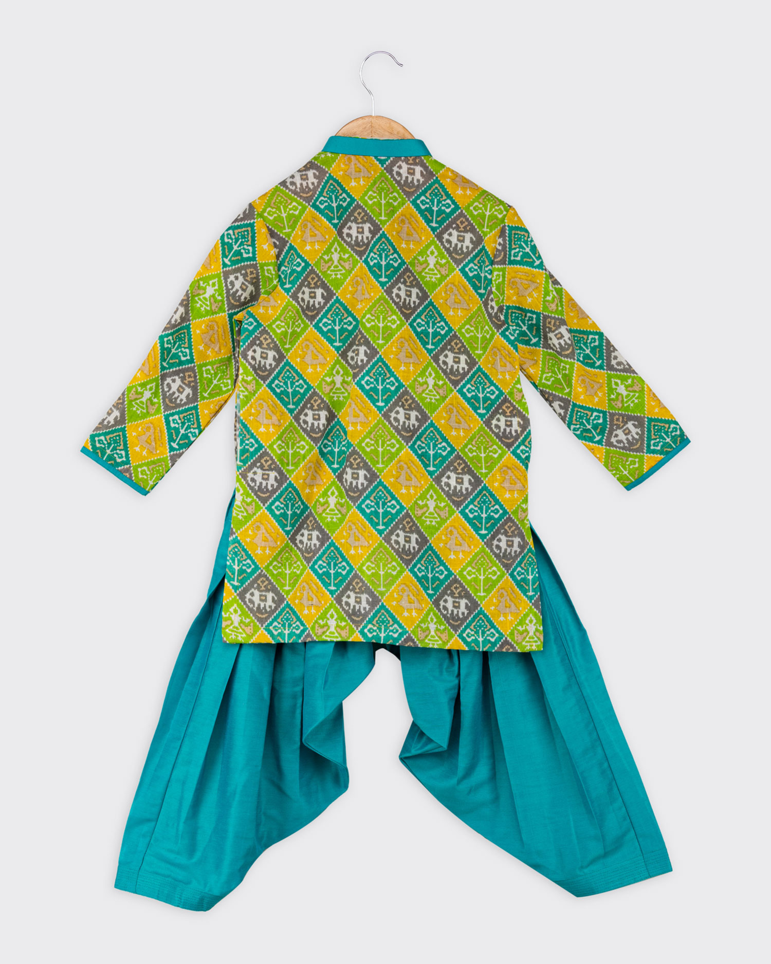 Patola print cotton kurta paired with cotton silk turquoise patiala